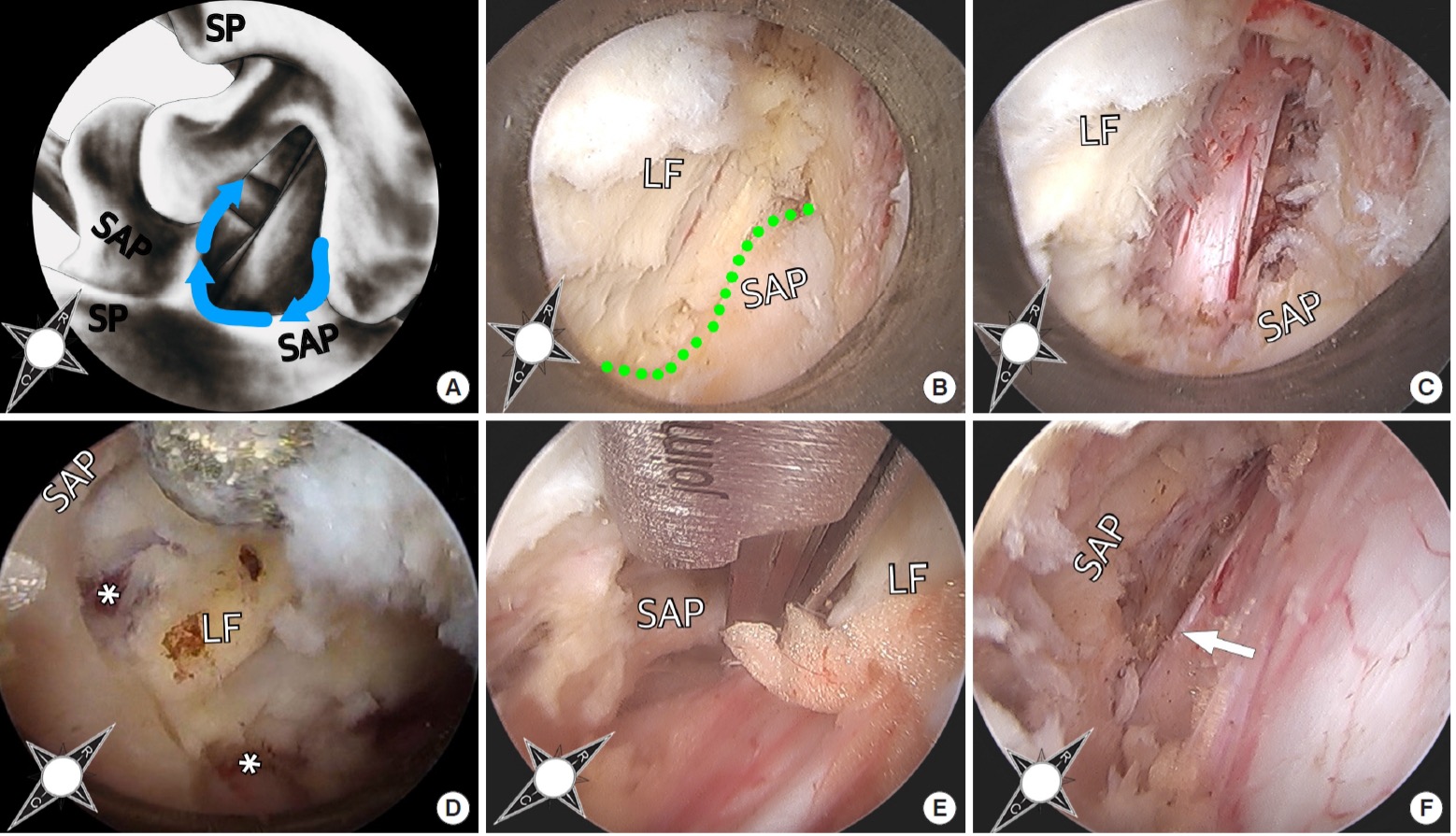 • Endoscópica: ligamentos, raízes, foramens, tecidos moles, pontos de compressão reais.